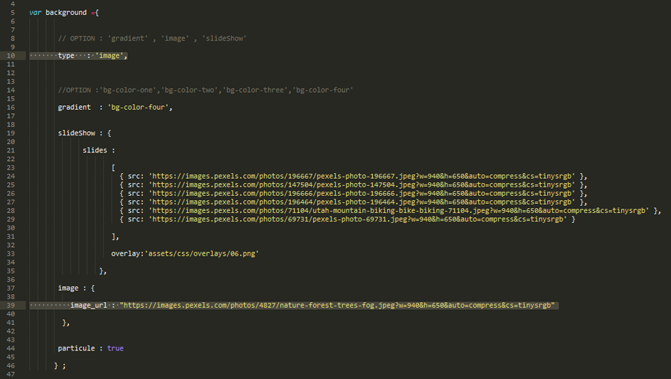 - for background type:"gradient" choose the between "bg-color-one","bg-color-two" , "bg-color-three" or "bg-color-four"