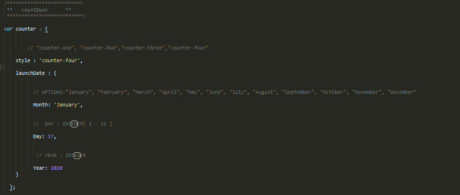 - Choose between 4 differents CountDown : "counter-one","counter-two","counter-three" or "counter-four"